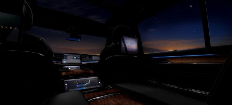 Zrelaksowana atmosfera wnętrza – podkreślona przez pięć personalizowanych motywów oświetlenia ambientowego, oświetlenie wejścia/wyjścia oraz wnętrzowe lampy LED do oświetlenia drzwi – dostarczona jest poprzez ponadczasowy design połączony z duszą Ameryki, co sprawi, że Wagoneer i Grand Wagoneer na zawsze zajmą swoje ikoniczne miejsce w historii.