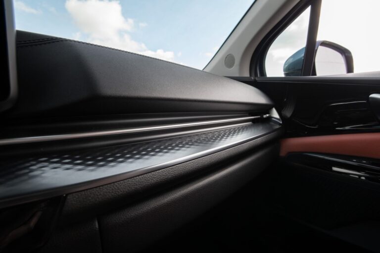 Chromowana listwa biegnie wzdłuż deski, tworząc poczucie przestrzeni w przedniej kabinie
