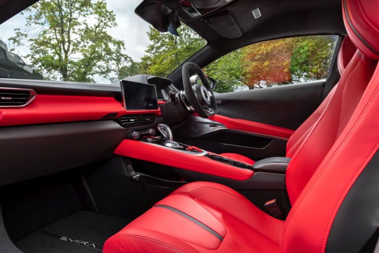 Wnętrza samochodów Lotusa zawsze były znane z umiejscowienia kierowcy w samym sercu doświadczenia, z czystym ergonomicznym designem i instrumentami starannie rozmieszczonymi dla maksymalnej intuicyjności. Emira ściśle przestrzega tych zasad, aby stworzyć nowoczesne środowisko kabiny z podstawowymi kontrolami w zasięgu ręki i minimalnymi rozproszeniami.