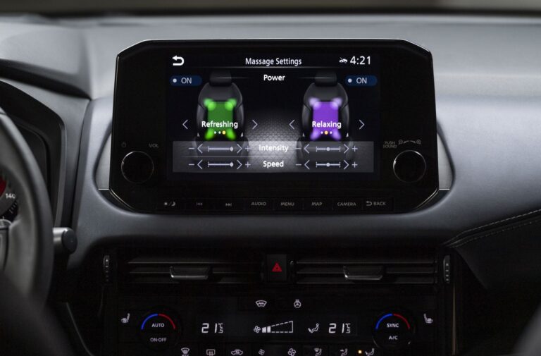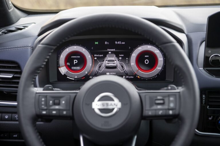 Nowy ekran wyświetlacza TFT o wysokiej rozdzielczości o przekątnej 12,3 cala oferuje wybór konfigurowalnych układów do wyświetlania nawigacji, rozrywki, informacji o ruchu drogowym lub pojeździe, wszystko kontrolowane za pomocą nowego, dotykowego pokrętła na kole kierownicy. Dodano także tradycyjny teksturę „Kiriko” z ciętego szkła do cyfrowego tła TFT – odniesienie do japońskiego DNA Nissana.