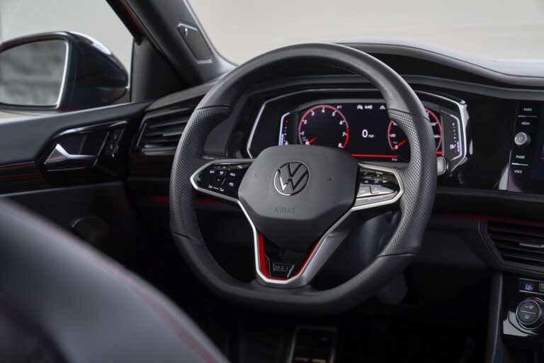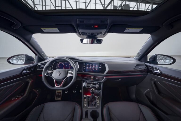 Wnętrze Volkswagen Jetta i GLI oferuje ulepszoną technologię oraz aktualizacje wzornictwa w całych kabinach. Zestaw wskaźników Volkswagen Digital Cockpit jest teraz standardowo wyposażony w 8-calowy wyświetlacz w Jetta, a w GLI 10-calowy Digital Cockpit Pro. Oba modele oferują standardowy system Volkswagen Car-Net® z możliwością Wi-Fi w samochodzie po subskrypcji planu danych. W wyższych wersjach Jetty oraz GLI standardem jest infotainment MIB3, wraz z bezprzewodowym ładowaniem i bezprzewodowym App-Connect dla kompatybilnych urządzeń. Nowe rombowe fotele materiałowe są standardem, podobnie jak kontrastowe przeszycia w całym kokpicie. Powierzchnie siedzeń z ekoskóry i skóry są dostępne w modelach Jetty, przy czym ta druga dostępna jest w nowym kolorze Volcano Brown oraz czarno-brązowym schemacie kolorystycznym. GLI wyróżnia się czerwonym kontrastowym przeszyciem w całym wnętrzu oraz perforowanymi skórzanymi siedzeniami z czerwonym podkładem.