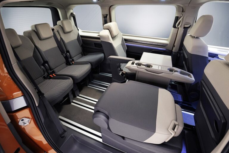 W środku, nowy Volkswagen Multivan jest bardziej elastyczny i przestronny niż kiedykolwiek, z nowym modułowym, lekkim systemem siedzeń i innowacyjnym stołem.