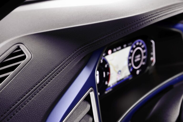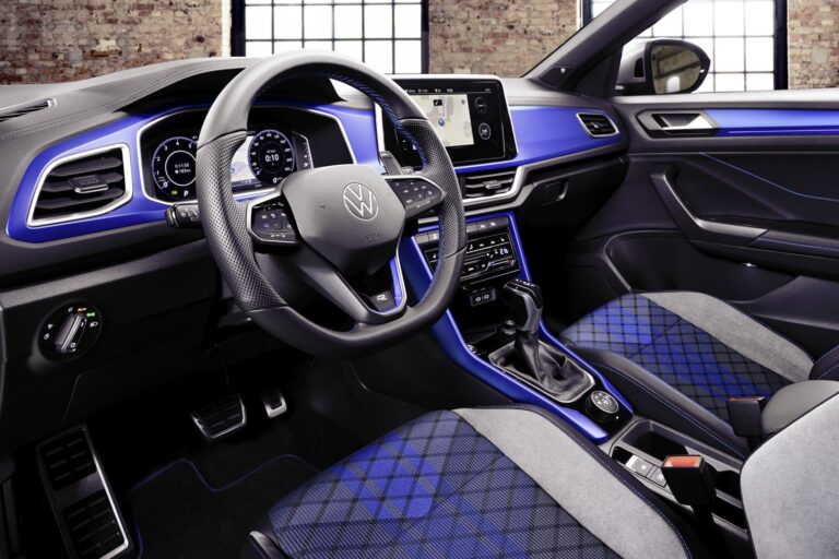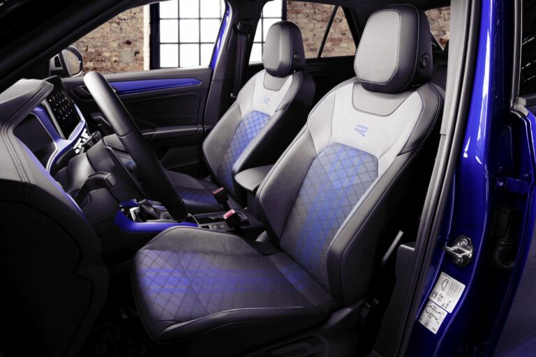 Wysokiej jakości dekoracyjne wstawki w Piano Black w standardzie oraz w opcjonalnej wersji Lapiz Blue mat ozdabiają deskę rozdzielczą, konsolę centralną i panele drzwiowe, a wykończenia paneli progowych zdobi wyraziste logo R. Szeroki podłokietnik centralny między przednimi siedzeniami zapewnia dużo miejsca dla łokci kierowcy i pasażera z przodu, aby zapewnić maksymalny komfort. Pakiet skórzany lub alternatywnie jeden z dodatkowych dwukolorowych wykończeń dostępny jest jako opcjonalne dodatki, by uczynić nowego T-Roc R jeszcze bardziej indywidualnym.