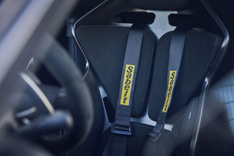 Fotele Sabelt Track o pojedynczej skorupie w A110 R inspirowane są światem wyścigów motorowych. Ze swoim unikalnym, włókiennym designem, mikrofibrą i szarym szyciem, uosabiają świat samochodów sportowych. Wyposażone w sześciopunktowe pasy bezpieczeństwa, fotele zapewniają optymalne wsparcie zarówno dla kierowcy, jak i pasażera. Fotele wyposażono również w ostrzeżenie 'Seat Belt Reminder’. Fotel kierowcy ma regulację przód-tył oraz w górę-dół, podczas gdy fotel pasażera pozostaje stały, dla większego komfortu. Litera 'A’ na zagłówkach odzwierciedla unikalną tożsamość marki Alpine.
