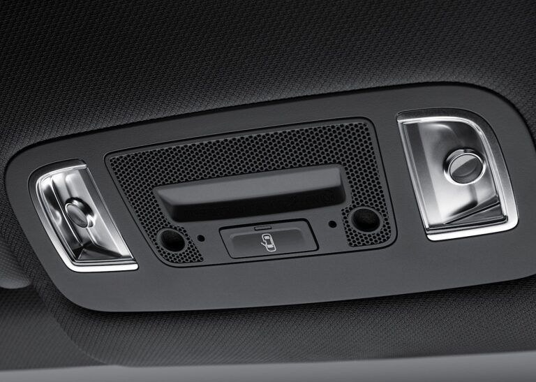 System dźwiękowy Bang & Olufsen wyposażony jest w 14-kanałowy wzmacniacz i 12 głośników; subwoofery w drzwiach świecą w ciemności dzięki regulowanym, dyskretnym światłowodom.