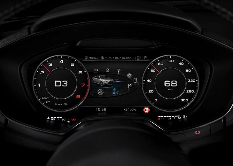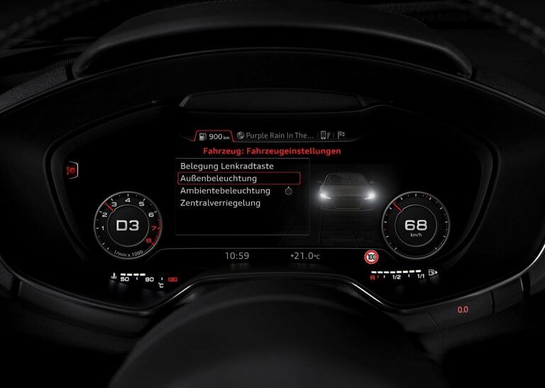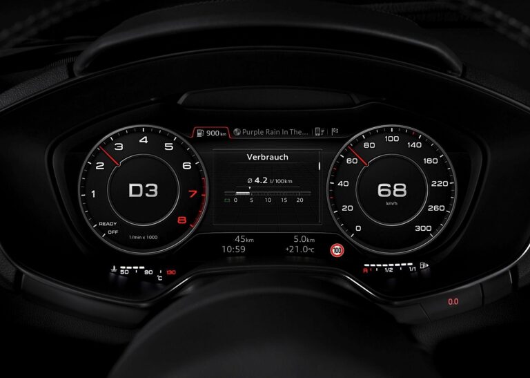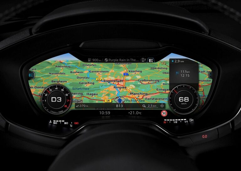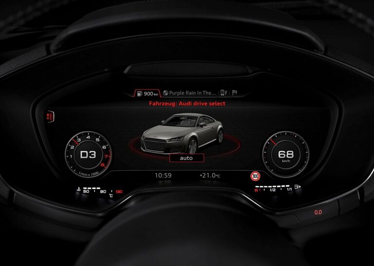 Zamiast konwencjonalnych analogowych wyświetlaczy, nowy TT ma na pokładzie wirtualny kokpit Audi – ta w pełni cyfrowa deska rozdzielcza ustala nowe standardy dzięki dynamicznym animacjom i precyzyjnej grafice. Kierowcy mogą wybierać między dwoma trybami wyświetlania: W widoku klasycznym, prędkościomierz i obrotomierz są na pierwszym planie; w trybie „infotainment” wirtualne instrumenty są mniejsze. Przestrzeń, która w wyniku tego staje się dostępna, zapewnia wystarczająco miejsca na inne funkcje, takie jak mapa nawigacyjna. W Audi TTS jest też trzeci, sportowy tryb. Tutaj centralnie umieszczony obrotomierz dominuje w wyświetlaczu.
