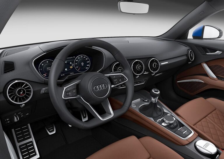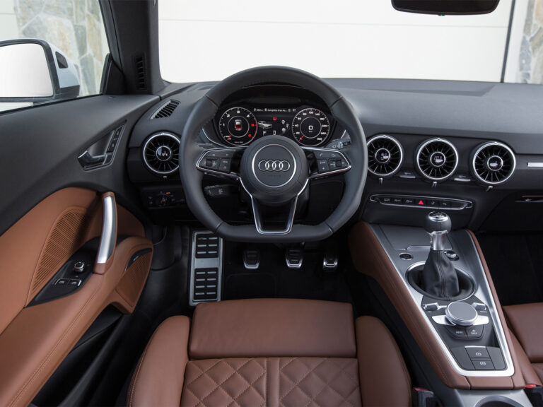 Zasada znów brzmiała: „mniej znaczy więcej”. Czyste, purystyczne linie podkreślają zarówno lekkość, jak i nieprzejednaną sportowość wnętrza Audi TT. Dwa inne pomysłowe i technicznie innowacyjne triki umożliwiły projektantom stworzenie imponująco smukłej deski rozdzielczej: Zespół wskaźników i ekran MMI zostały połączone w centralną, cyfrową jednostkę – tzw. wirtualny kokpit Audi. Ponadto, sterowanie systemem klimatyzacji jest umiejscowione bezpośrednio w wentylacjach powietrza.