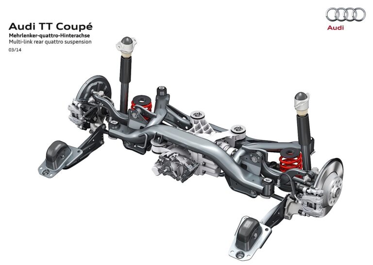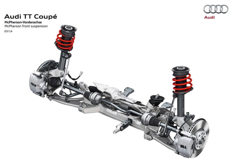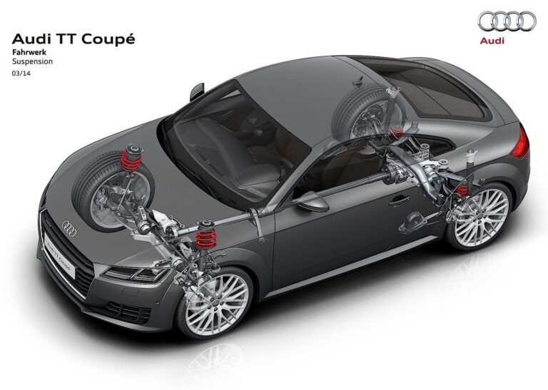 Dzięki rozbudowanej konstrukcji podwozia i sztywnemu ustawieniu, nowy Audi TT zachowuje się doskonale we wszystkich sytuacjach. Nadwozie jest obniżone o 10 mm w TTS, w pakiecie sportowym S line oraz z systemem adaptacyjnego sterowania amortyzatorami, Audi magnetic ride.