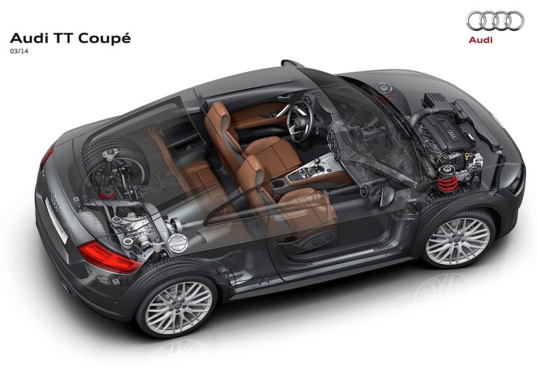 Jednym z największych atutów Audi jest lekka konstrukcja, a struktura podwozia coupé optymalizuje obciążenie osi i wykorzystuje panele ze stali o wysokiej wytrzymałości. Jednocześnie progi boczne i rama dachu wykonane są z wyciskanych profili aluminiowych. Ten mały piękny samochód nie da się pomylić z żadnym innym na drodze.