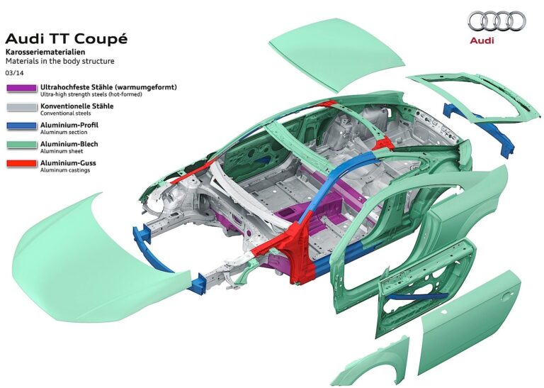 Lekka konstrukcja to jedna z największych dziedzin wiedzy Audi. Druga generacja Audi TT miała już nadwozie z Audi Space Frame (ASF) wykonane z aluminium i stali. Dla nowego TT Audi systematycznie poszło dalej w kierunku tego zasady konstrukcji kompozytowej, zgodnie z ideą: odpowiednia ilość odpowiedniego materiału w odpowiednim miejscu dla optymalnych funkcji.