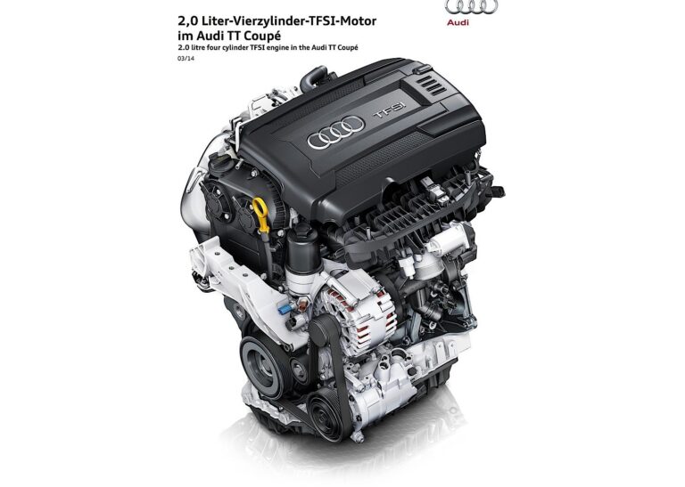 Silnik 2.0 TFSI dostępny jest w dwóch wersjach – 169 kW (230 KM) dla TT i 228 kW (310 KM) dla TTS. W obu wersjach łączy różne ultranowoczesne technologie – dodatkowy pośredni wtrysk uzupełniający bezpośredni wtrysk FSI, system Audi valvelift (AVS) do regulacji skoku zaworu po stronie wydechu i zarządzanie termiczne, które wykorzystuje moduł zaworu obrotowego oraz kolektor wydechowy zintegrowany z głowicą cylindrów.