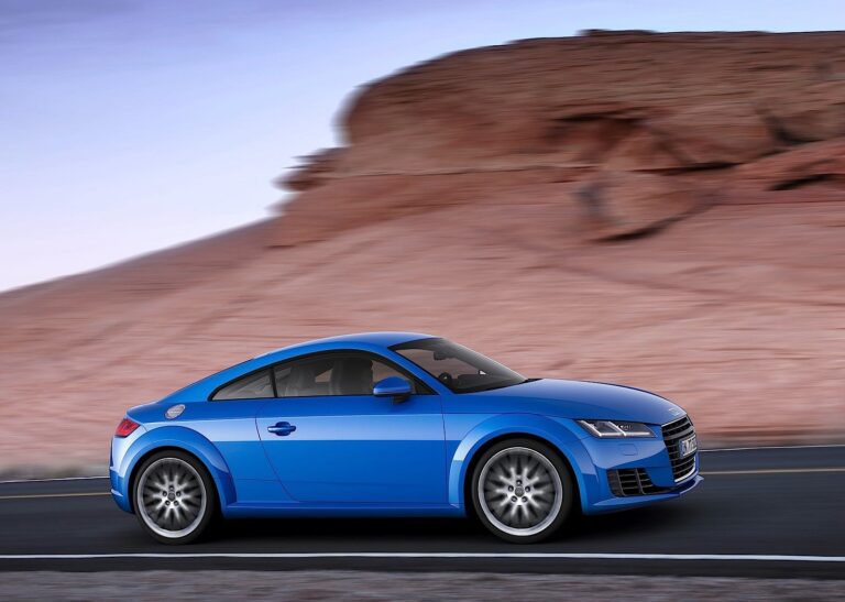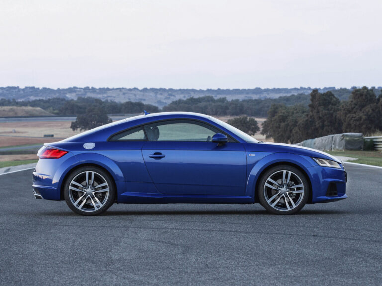 Z boku nowy Audi TT jest równie smukły i muskularny; leży nisko na drodze, gotowy do skoku. Przy długości 4,18 metra Coupé jest prawie dokładnie tej samej długości co jego poprzednik, chociaż jego rozstaw osi wzrósł o 37 mm do 2,505 mm, co skutkuje szczególnie krótkimi zwisami. Ma 1,832 mm szerokości i taką samą wysokość jak poprzedni model wynoszącą 1,353 mm.