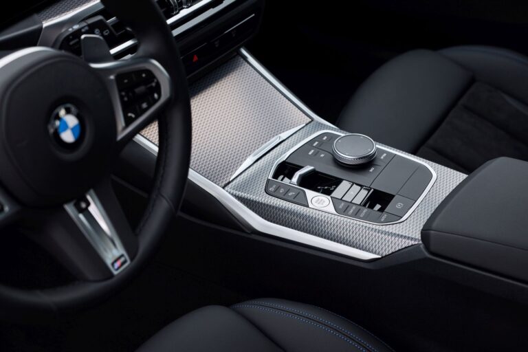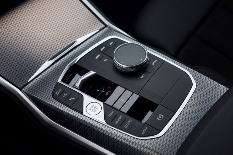 Klasycznie zaprojektowany panel sterujący na konsoli centralnej nowego sedana BMW serii 3 i nowego BMW serii 3 Touring ma dodatkowe powierzchnie obsługiwane dotykowo. Znajdują się tutaj przyciski Start/Stop, iDrive Controller, przyciski Driving Experience Control, hamulec ręczny i inne funkcje pojazdu.
