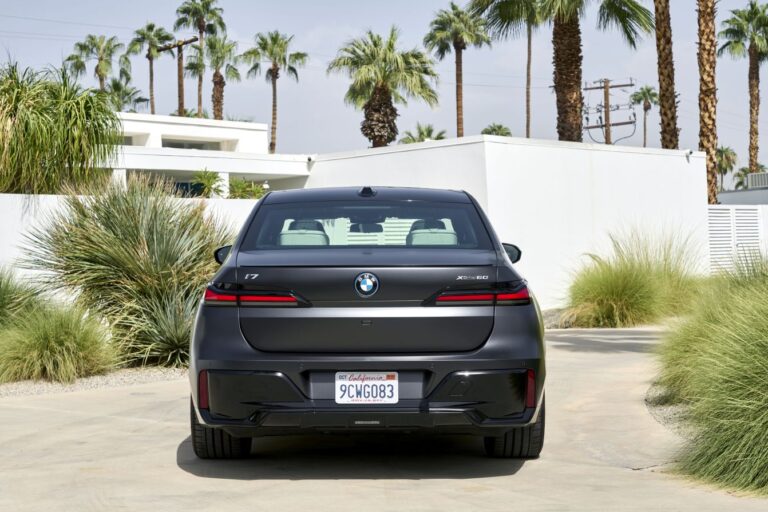 Choć niektórzy mogą twierdzić, że nerka grilla jest zbyt duża lub szeroka, producent uznał, że jest w sam raz. Po bokach zamontowano światła do jazdy dziennej, a reflektory umieszczono niżej, z adaptacyjnymi LED-ami i opcją kryształów od Swarovskiego. Dolna część zderzaka była zdominowana po bokach przez masywne wloty powietrza, które kierowały powietrze w stronę boków pojazdu. Z profilu model i7 miał nachyloną tylną szybę i wysoki bagażnik z tyłu. Jak się można było spodziewać, światła tylnie były wyposażone w LED-y i nie miały końcówek wydechowych.