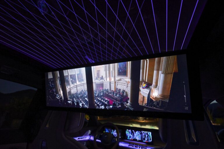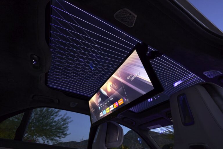 Ekran teatralny BMW, wysuwający się z podsufitki, z wbudowanym Amazon Fire TV oferuje unikalną rozrywkę dla pasażerów tylnych. Z 31,3-calowym ekranem dotykowym i rozdzielczością 8K, systemem dźwięku przestrzennego Bowers & Wilkins z opcjonalnymi wzmacniaczami w fotelach oraz dotykowymi panelami sterującymi w drzwiach tylnych (BMW Touch Command), przekształca tylną część serii 7 BMW w prywatne kino na kółkach. Pasażerowie mogą strumieniować filmy, grać w gry, słuchać muzyki, uzyskiwać informacje i oglądać pobrane programy – wszystko w trakcie podróży.