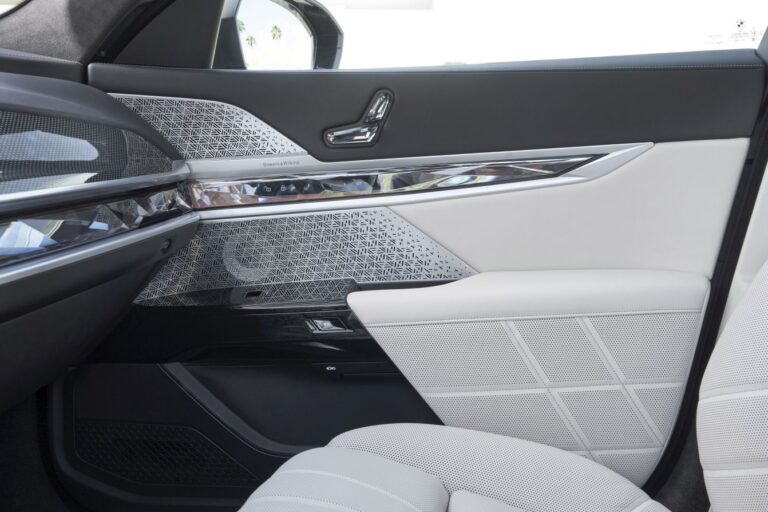 Nowa seria 7 BMW wprowadza nowoczesny styl, który koncentruje się na istotnych elementach w swoim designie zewnętrznym i wewnętrznym. Projekt przodu aut BMW w segmencie luksusu zdominowany jest przez cechy typowe dla marki, ale zachowuje wyraźne rozróżnienie między tymi modelami a innymi w ofercie BMW. Innowacyjne funkcje, takie jak ekran teatralny BMW, wielozmysłowe doświadczenie pojazdu BMW iDrive z najnowszą wersją systemu operacyjnego BMW 8 oraz zakrzywiony wyświetlacz BMW i asystent do manewrowania, podkreślają nowoczesny charakter luksusowego sedana. Oprócz podwyższonego poziomu komfortu i unikalnego systemu rozrywki w samochodzie, opcja Executive Lounge z optymalizowaną pozycją uchylnego fotela oraz nowymi elementami wykończenia wnętrza z indywidualnej linii BMW Merino skórzanej/wełnianej kaszmirowej przyjmuje nowatorskie podejście do maksymalizacji komfortu wewnątrz samochodu.