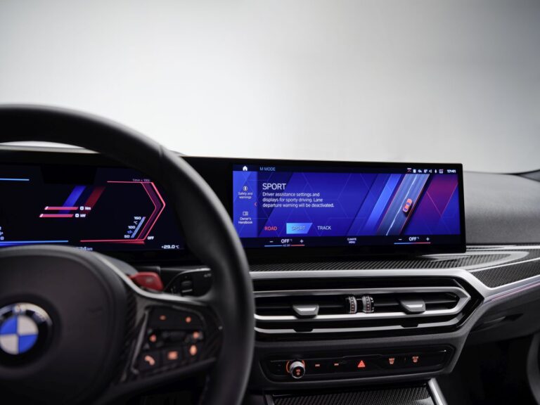 Istnieje również opcja nowo zaprojektowanych i ekskluzywnych siedzeń M Sport z jeszcze bardziej podkreślonymi bocznymi podparciami i konturowymi liniami wokół oparcia i zagłówka w kolorach BMW M GmbH. Są wykończone skórą Vernasca/Sensatec z perforowanymi powierzchniami i można je zamówić zarówno w kolorze czarnym, jak i koniakowym. Ich zintegrowane zagłówki mają podświetlone logo M. Siedzenia M Sport również są dostępne z elektryczną regulacją, w tym z regulacją wysokości zagłówków. Do wyboru są także pasy bezpieczeństwa M z wzorem w formie tkanej w kolorach BMW M GmbH.