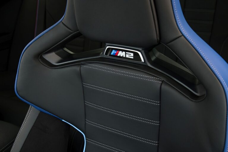 Fotele kubełkowe M Carbon – również dostępne na liście opcji dla nowego BMW M2 – emanują czystym wyścigowym stylem od momentu otwarcia drzwi. Również w pełni elektryczne i podgrzewane, mają zintegrowane zagłówki i podświetlone logo modelu. Skórzana tapicerka Merino pokrywająca powierzchnie siedzeń zwiększa komfort, a demontowalne zagłówki oraz możliwość dodania sześciopunktowego pasa bezpieczeństwa podkreślają wyścigowy charakter foteli kubełkowych M Carbon. Zastosowanie włókna węglowego (CFRP) w elementach konstrukcyjnych siedziska i oparcia, wraz z wycięciami w bocznych podparciach i pod zagłówkami, pozwala zaoszczędzić 10,8 kilograma w porównaniu do siedzeń M Sport.