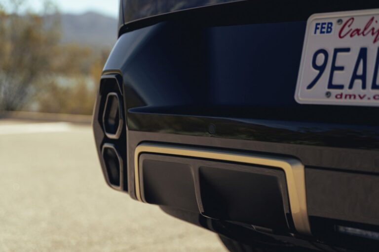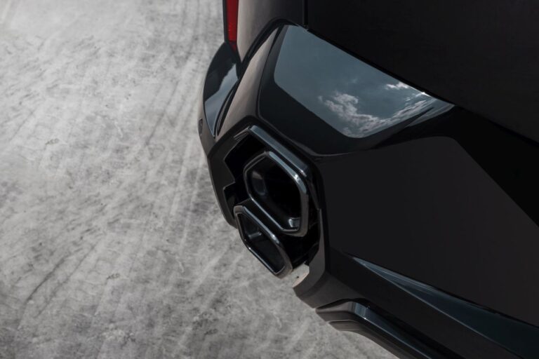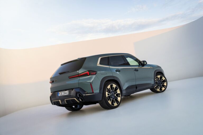 Pionowo ustawione reflektory ograniczają tylny zderzak po obu stronach. Elementy dyfuzora zintegrowane w dolnej części tylnego zderzaka są pomalowane na czarno w wysokim połysku i otoczone wysokopolerowanym obramowaniem. Czarne oznaczenie modelu na tylnej klapie jest obramowane złotem. Para rur wydechowych z podwójnej, dwu-odgałęzionej rury wydechowej wystaje z obu stron dyfuzora. Ten znany element designu modeli M został przekształcony dla BMW XM, z heksagonalnymi zakończeniami rur wydechowych umieszczonymi pionowo. Specyficzne dla modelu elementy kierujące powietrze w podwoziu zapewniają dodatkowe chłodzenie dla układu wydechowego, umożliwiając optymalną temperaturę roboczą przez cały czas – nawet gdy silnik działa pod dużymi obciążeniami przez dłuższy czas.