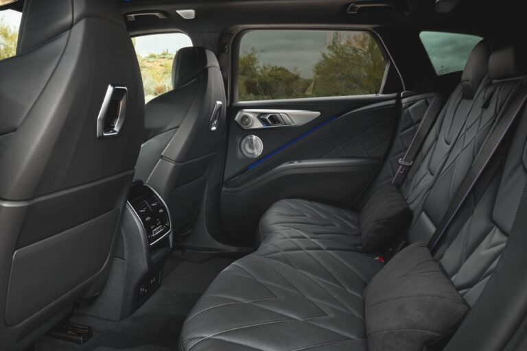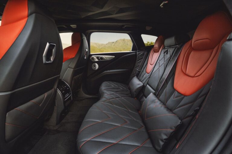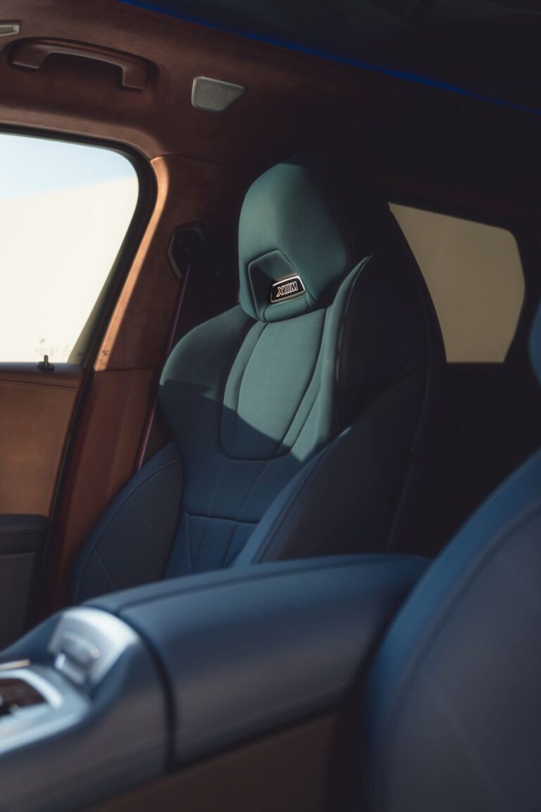 Obfitość przestrzeni, wysokiej jakości materiały i odważny design przekształcają tylną część BMW XM w ekskluzywny M Lounge. Tylna kanapa oferuje dwa siedzenia boczne i pełnowymiarową przestrzeń dla trzeciego pasażera w środku. Głębokie wgłębienia i kolorystyka oraz materiały, które przechodzą w panele wykończeniowe drzwi, tworzą zapraszający charakter w stylu lounge w tylnych siedzeniach, dając poczucie wygody i komfortu. Trójwymiarowe pikowanie diamentowe, które rozciąga się w panele wykończeniowe drzwi, kontury w kształcie diamentu w górnej części oparcia i zintegrowane zagłówki nadają tylnym siedzeniom nowoczesny i sportowy wygląd. Opcjonalne podgrzewanie siedzeń dla M Lounge obejmuje panele boczne oraz powierzchnie siedzeń i oparcia.