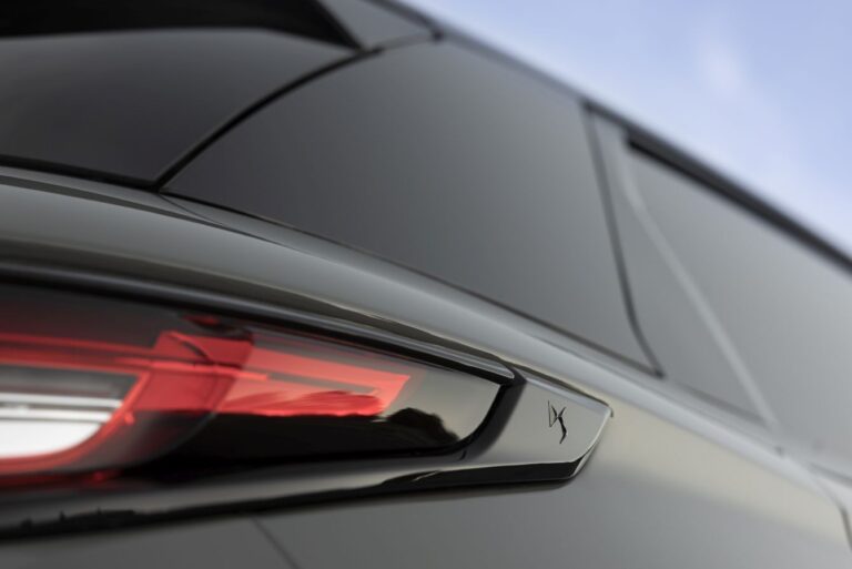 Tył został udoskonalony: światła i klapa bagażnika zostały gustownie podkreślone lakierowanym czarnym paskiem. To uzyskuje podpis „DS Automobiles” dzięki unikalnej technologii, litery w polished stainless steel są dzielone i umieszczane pojedynczo w wykończeniu, tak jak w New DS 7.
