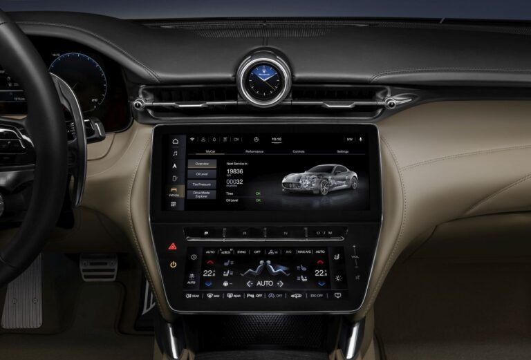 Wnętrze nowego Maserati GranTurismo to nowoczesna kabina, wyposażona w innowacyjne systemy, w tym Maserati Intelligent Assistant (MIA) Multimedia, najnowszy system infotainment, wyświetlacz komfortu, który łączy główne funkcje w zintegrowanym interfejsie ekranowym, cyfrowy zegar i Head-up Display (dostępny jako opcja).