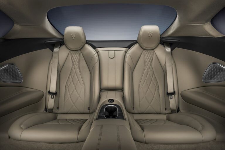 Wnętrze Maserati postawiło na sportowy styl, luksus i nowoczesne technologie. Model GranTurismo 2022 może się pochwalić czterema miejscami oraz wnętrzem wykończonym skórą. Z przodu, wysokie fotele kubełkowe były wygodne i zapewniały odpowiednie wsparcie boczne podczas szybkiego pokonywania zakrętów. Deska rozdzielcza łączyła drewniane wykończenia z nowoczesnymi wyświetlaczami dla panelu instrumentów i systemu multimedialnego, które znajdowały się na szczycie centralnej konsoli.