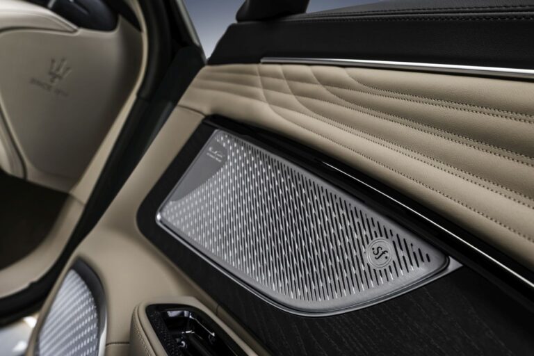 Maserati GranTurismo oferuje również „wszechstronne doświadczenie dźwiękowe”, gwarantowane przez ikoniczny dźwięk silnika Maserati, nawet w wersji elektrycznej, dzięki innowacyjnym pracom inżynierów z Maserati Innovation Lab. Doświadczenie dźwiękowe uzupełnia immersyjny system dźwiękowy Sonus faber 3D. Zaprojektowany i wykonany przez włoskich rzemieślników dźwięku, system audio oferuje dwa poziomy personalizacji, oferując do 19 głośników i dźwięk 3D z mocą do 1195 W, zapewniając głębię przestrzeni i naprawdę unikalną pełnię brzmienia.