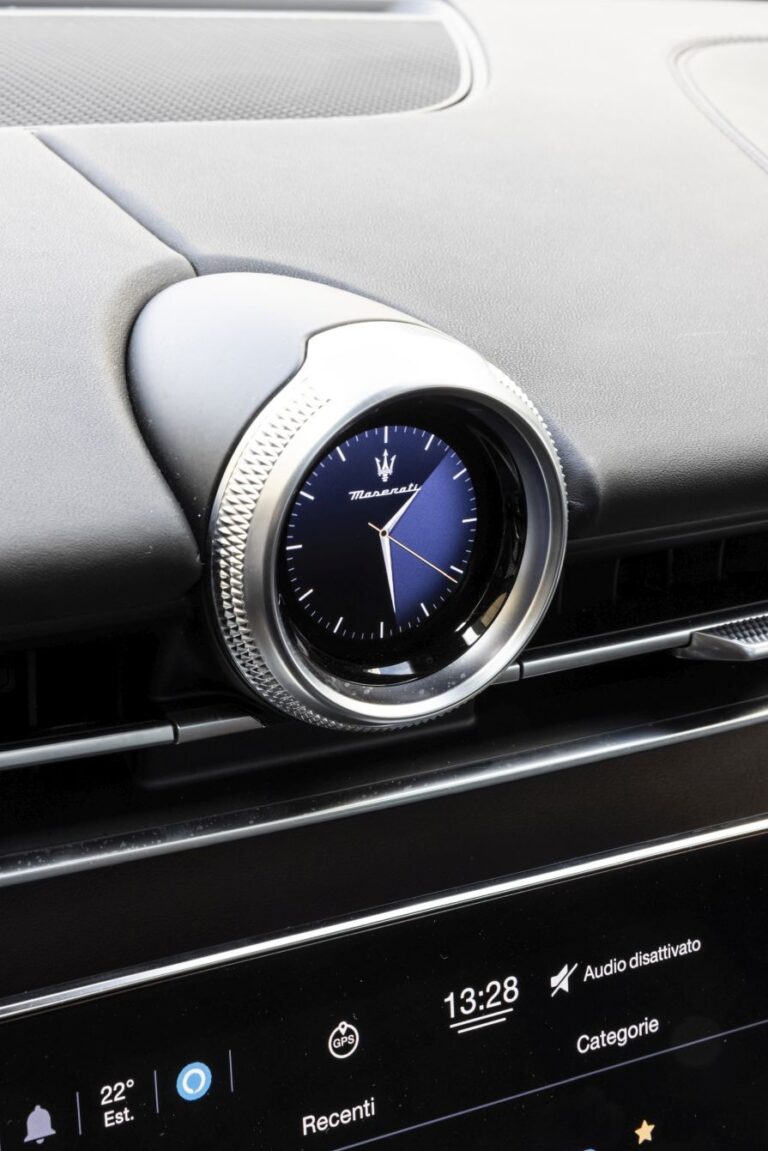 Styl Maserati wzbogaca się o specyfikacje techniczne: gdy wsiadasz do kabiny Grecale, witają cię cyfrowy zegar, pierwszy w historii marki Trident, który staje się rzeczywistym interfejsem między kierowcą a samochodem. Teraz nie tylko pokazuje czas: może również emitować sygnał odpowiedzi za każdym razem, gdy otrzymuje komendę głosową. Przyjmuje klasyczną formę, ale ma futurystyczny wygląd, niemal przewodni temat dla Grecale, mówiąc, czy kontakt z samochodem jest aktywny i czy samochód jest gotowy do interakcji z nami. To nie tylko ekran dotykowy zmieniający wygląd i styl zgodnie z naszymi gustami. R raczej jest czymś więcej, a w razie potrzeby może nawet stać się kompasem lub miernikiem G.