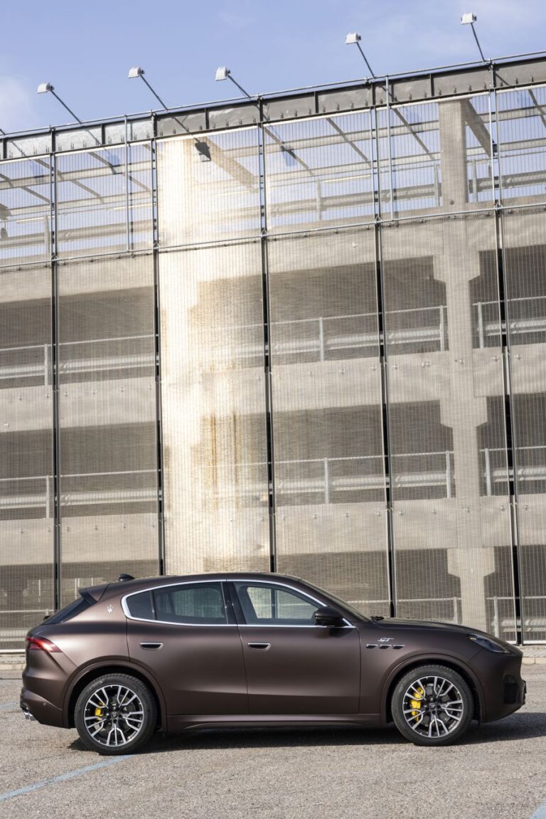 Kolor startowy Bronzo Opaco jest również wynikiem skrupulatnych badań: Bronzo, otulające, brązowe, o matowym i jedwabistym, lecz bardzo technicznym i minimalistycznym wykończeniu, idealnie komponuje się z formami Maserati Grecale; kontrast z wykończeniami w szczotkowanym chromie sprawia, że jest nowoczesny i wyrafinowany, podkreślając jego silny charakter.