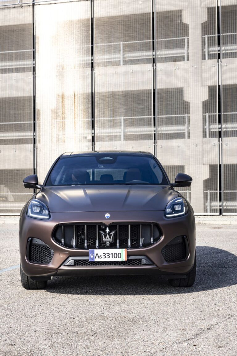 Podobnie jak MC20, Grecale teraz przyjmuje bardziej pionowy niż poziomy aspekt, dostosowany do wymagań SUV-a. Przód jest najbardziej charakterystyczną stroną nowego modelu, z niską i imponującą kratką, która nie jest przesadzona, znak, który podkreśla, że samochód to Maserati. W wersji Trofeo kratka jest nieco przesunięta do przodu, aby była bardziej wyrazista i podkreślić sportowy charakter.
