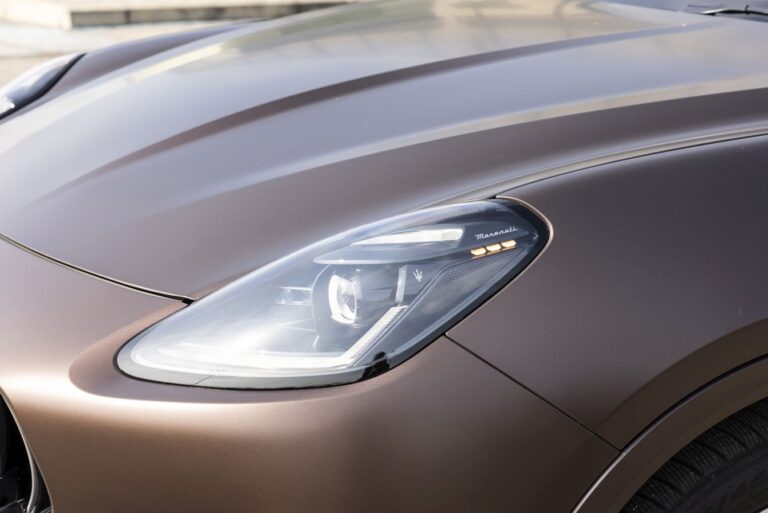 Jeśli Levante to luksusowy SUV średniej wielkości, to co można powiedzieć o Grecale? Z zewnątrz wygląda bardziej jak pomniejszona wersja Levante. Maserati zachowało czystość kształtów, pozbawioną ostentacji, co sprawia, że jest łatwo rozpoznawalne dzięki liniom na masce i charakterystycznym trójkątnym reflektorom.