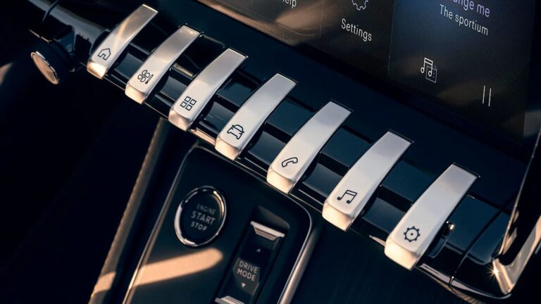 Konsola centralna ma nowy, smukły design z nowym automatycznym selektorem biegów. Kierowca może jednym dotknięciem wybrać różne tryby 8-biegowej automatycznej skrzyni biegów EAT8.