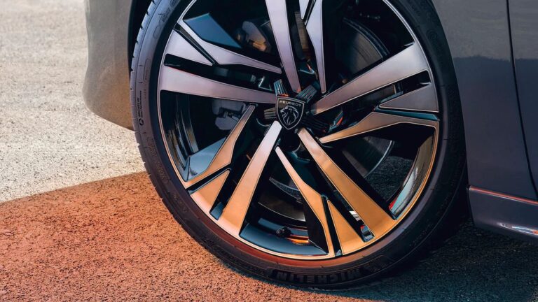 Wszystkie aluminiowe koła są wyposażone w centralną część o 5 ramionach z odciskiem herbu PEUGEOT, a nakrętki kół są całkowicie ukryte.