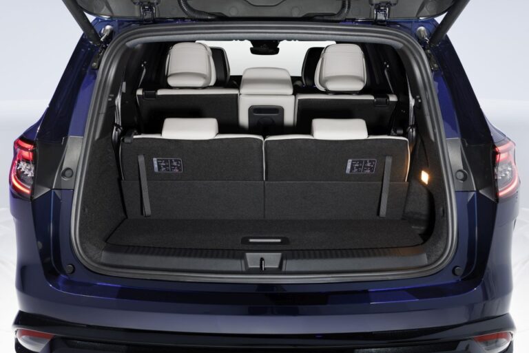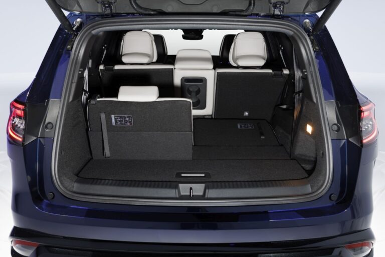 Pasażerowie w trzecim rzędzie (który jest dostępny bezpłatnie przy zamówieniach) również będą cieszyć się obfitym miejscem na kolana (128 mm) oraz funkcjami Easy Access, umożliwiającymi przesunięcie siedzeń drugiego rzędu o 260 mm do przodu i pochylenie oparć do przodu. Każdy pasażer ma napinacze w pasach bezpieczeństwa, dotykowe oświetlenie sufitowe, gniazda USB-C do ładowania oraz w niektórych wersjach mogą cieszyć się systemem audio Harman Kardon.