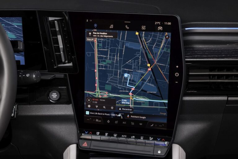 Następnie aktywny asystent kierowcy i adaptacyjny tempomat mogą teraz zawierać „realistyczny” widok na desce rozdzielczej. Ten widok to stworzony w czasie rzeczywistym komputerowy model pasa, w którym znajduje się samochód oraz położenie nowego Espace w stosunku do innych obiektów.