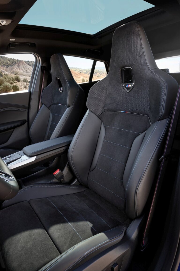 Alternatywą dla standardowego obicia z tkaniny w kolorze antracytowym są perforowane wersje Veganza oraz skóra Vernasca z atrakcyjnym pikowaniem. Klienci mogą wybierać spośród kolorów Czarny, Mocha i Ostryga dla każdego wariantu. Powierzchnie Veganza mogą być również zamawiane w dwóch wariantach dwukolorowych. Wyłącznie dla BMW X2 i BMW iX2 – obok połączenia Czerwony/Czarny – dostępny jest nowy wariant Atlas Grey/Smoke White. Pakiet M Sport obejmuje sportowe siedzenia Veganza/Alcantara w antracytowym kolorze z niebieskimi przeszyciami kontrastowymi lub, jako opcję, skórę Vernasca z wyjątkowym pikowaniem w diamenty. Powierzchnie Veganza z właściwościami przypominającymi skórę i efektownymi przeszyciami kontrastowymi mogą być również zamawiane jako opcja dla deski rozdzielczej i ramion drzwi.
