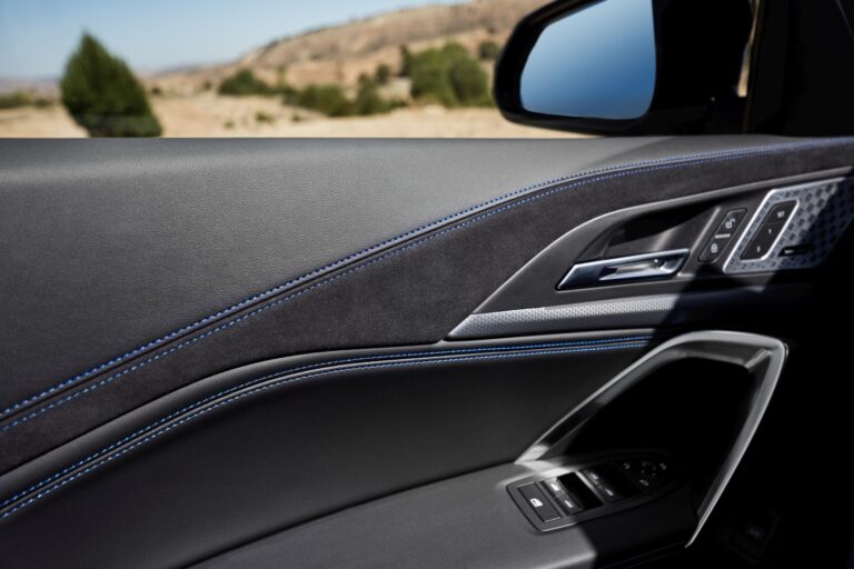 Poniżej smukła deska rozdzielcza podkreśla szerokość wnętrza swoimi przestronnymi i poziomymi wykończeniami dekoracyjnymi. Pięć wariantów listew wykończeniowych wewnętrznych, w tym nowy Aluminium z graficznymi akcentami oraz – wyłącznie w samochodach z pakietem M Sport – Aluminium Hexacube light, pozwala właścicielom na indywidualizację designu. Wszystkie opcjonalne listwy wykończeniowe wnętrza są połączone z oświetleniem ambientowym.