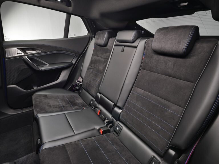 Tylna część nowego BMW X2 ma trzy pełnowymiarowe fotele z zauważalnie lepszym komfortem siedzenia niż oferował model poprzedni. Zintegrowane w zewnętrznych fotelach mocowania dla fotelików dziecięcych ISOFIX. Podłokietnik z wbudowanymi uchwytami na kubki można złożyć z centralnej sekcji.