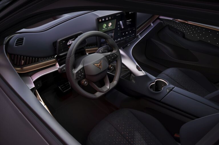 Dodając do tego koncepcję „hełmu”, gdzie polerowany czarny słupek A łączy przednią szybę z bocznymi szybami, powstaje panoramiczny efekt podobny do wizjera kierowcy wyścigowego, co jeszcze bardziej podkreśla wrażenie wydajności. Wszystkie te koncepcje zostały zainspirowane wyścigowym CUPRA Tavascan XE, który bierze udział w całkowicie elektrycznej serii Extreme E.