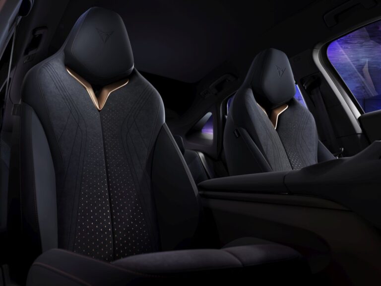 Miejsca zaprojektowane dla doznania: CUPRA Tavascan będzie standardowo wyposażona w sportowe fotele kubełkowe. Rzeźbiarska architektura siedzeń wykorzystuje lekką konstrukcję, wprowadzając nową koncepcję designu siedzeń bez utraty wsparcia. Elegancja foteli podkreślona jest wyborem kolorów: Soul Black, Dark Night lub Enceladus Grey Metallic (ekskluzywne dla kubełków CUPRA, które będą dostępne w późniejszym terminie).