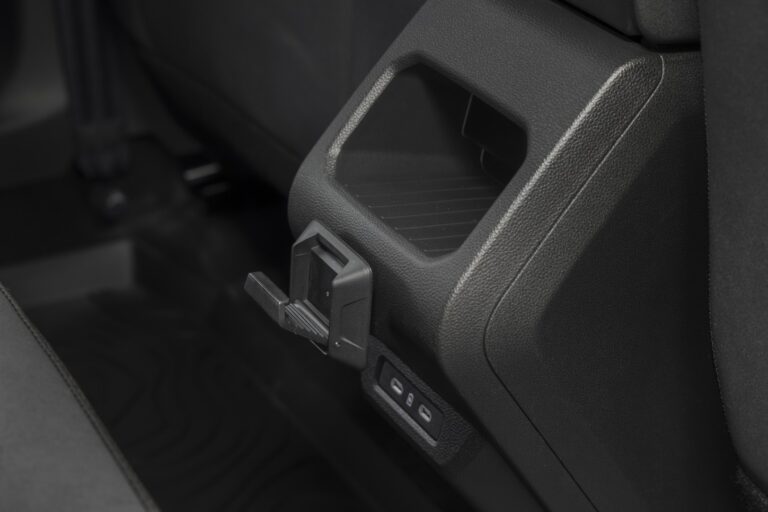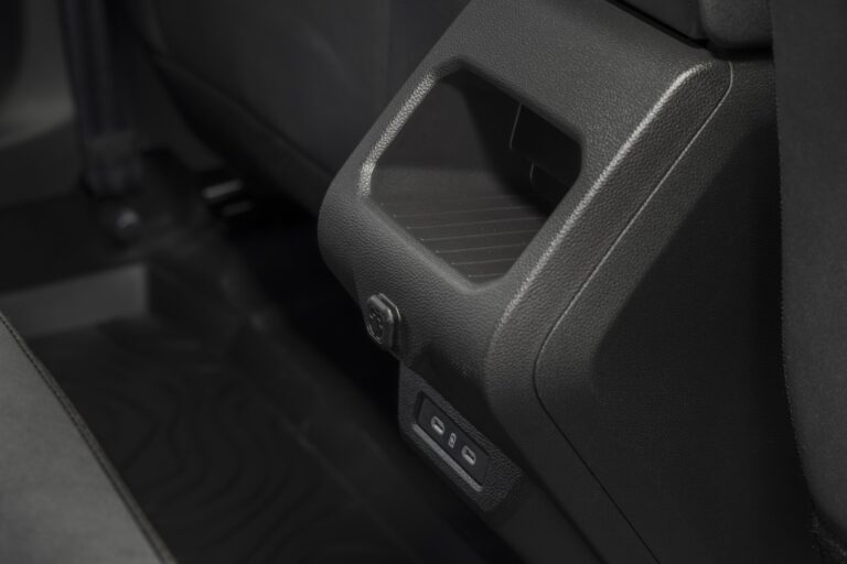 Wewnątrz: kabina jest wytrzymała. To szczególnie widoczne w wersji Extreme, która występuje w standardzie, z łatwo czyszczonym materiałem tapicerskim TEP MicroCloud oraz gumowymi matami z przodu, z tyłu i w bagażniku. Maty są w 20% wykonane z recyklingu.