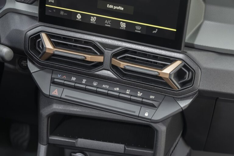 To uczucie pochodzi również z wysokiego, pionowego nowego deski rozdzielczej. Kształt nawiewów, które przypominają nadkola, dodaje do spójnego odczucia.