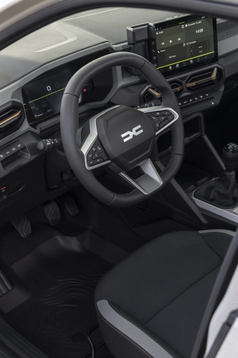 Wewnątrz powierzchnia nawiewów jest w kształcie Y (i miedziana w wersji Extreme), a Y pojawia się również wokół podłokietników paneli drzwiowych. Nazwa marki pośrodku kierownicy została zastąpiona logo Dacia.