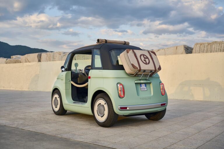 Oferta obejmuje dwa różne nadwozia, jedno zamknięte i jedno otwarte, oba spójne w swoich cechach konstrukcyjnych: jeden kolor, Verde Vita, jeden wzór kół oraz jeden estetyczny sposób wykończenia wnętrza. Dzięki swoim niezwykle małym wymiarom w porównaniu do standardowego samochodu (2,53 metra długości), łatwości w prowadzeniu i bezpiecznej prędkości maksymalnej 45 km/h, Topolino na nowo rozbudza chęć podróżowania bez stresu. Wszechstronny, oba modele oferują dużą zdolność elektryczną dzięki akumulatorowi o pojemności 5,4 kWh, który zapewnia zasięg do 75 km i czas ładowania poniżej czterech godzin. To więcej niż wystarczająco na dni spędzone nad morzem lub codzienne dojazdy w centrach miast.