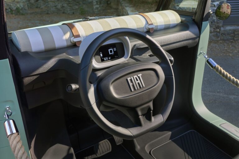 Ponadto dodatkowe akcesoria można znaleźć na stronie internetowej Akcesoriów Fiata lub w salonach FIAT, aby zaspokoić wszystkie potrzeby klientów. Dostępnych będzie pięć różnych przedmiotów, które idealnie wpisują się w styl Topolino: przestronna torba na bagaż, wentylator USB, głośnik Bluetooth, termiczna butelka na wodę zarówno na ciepłe, jak i zimne napoje oraz dwa pokrowce na siedzenia, które można przekształcić w wygodne i miękkie ręczniki plażowe w razie potrzeby. Wszystkie z nich, oczywiście, w Verde Vita.