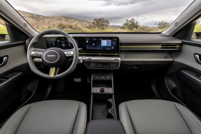 Na podstawie zwiększonych wymiarów modelu i uniwersalnej architektury pochodzącej z EV, Hyundai zaprojektował większą przestrzeń „życiową” we wnętrzu, aby objąć szerszy wachlarz stylów życia klientów. Zorientowany na kierowcę pierwszy rząd akcentowany jest unoszącym się poziomym C-Padem z wbudowanymi podwójnymi 12,3-calowymi panoramicznymi ekranami, które potwierdzają nowoczesny charakter Kona.