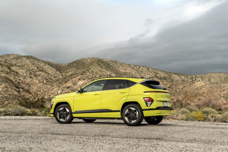 W profilu 2024 Hyundai Kona Electric zachowała ten sam wygląd crossovera segmentu B, z wyższym prześwitem niż zwykły sedan czy hatchback. Producent użył wykończeń w kolorze nadwozia wokół nadkoli, łagodząc surowy wygląd pojazdu. Podobnie jak w poprzedniej generacji, model na rok 2024 miał rzeźbione drzwi. Jednak zespół projektowy producenta wprowadził nowe pomysły, takie jak wyprofilowana linia łącząca nadkola z tylnym spojlerem. Na koniec, z tyłu, producent nawiązał do elementów z przedniej części Kona. Umieścił czerwoną poziomą listwę LED, która przebiegała wzdłuż klapy bagażnika oraz strzałkowate tylne lampy poniżej linii pasa.