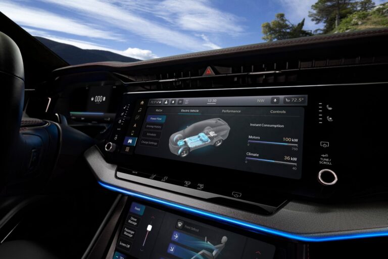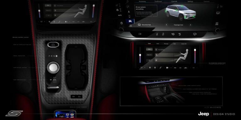 Nowy Jeep Wagoneer S, lider w swojej klasie wśród wszystkich EV, oferuje ponad 45 cali wysokiej rozdzielczości przestrzeni ekranowej, w tym ekskluzywny w segmencie interaktywny wyświetlacz pasażera o przekątnej 10,25 cala, który łączy się bezpośrednio z systemem Uconnect 5, umożliwiając pasażerowi z przodu udzielanie kierowcy wskazówek za pomocą szybkiego dotknięcia ekranu.