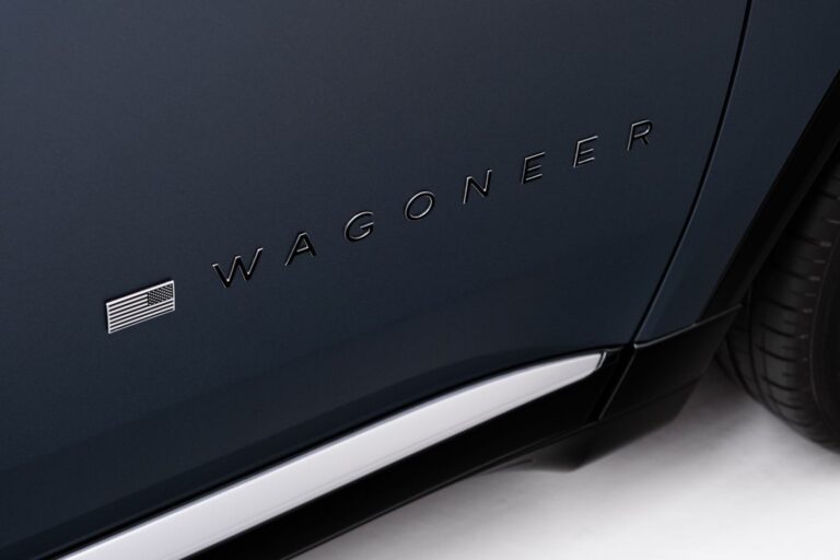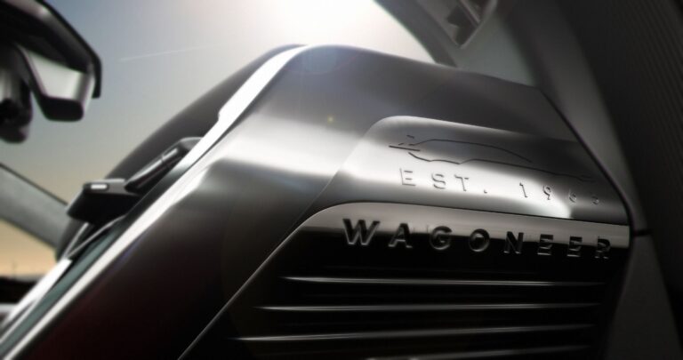 Powierzchnia aerodynamiczna jest podkreślona precyzyjnym nachyleniem i krzywizną maski oraz szyby, obie skierowane w stronę optymalnej wydajności i efektywności przy wysokich prędkościach. Opadająca linia dachu łączy się z wysuniętym tylnym spojlerem, łącząc funkcję i estetykę za pomocą charakterystycznej sylwetki Wagoneer.
